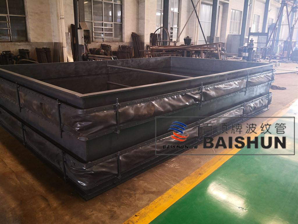 矩形非金屬膨脹節(jié)主要用于通風除塵系統(tǒng)進出口的矩形管道上。通常管道材質(zhì)為碳鋼,厚度在6-10mm之間。風壓在-5000-18500pa之間。